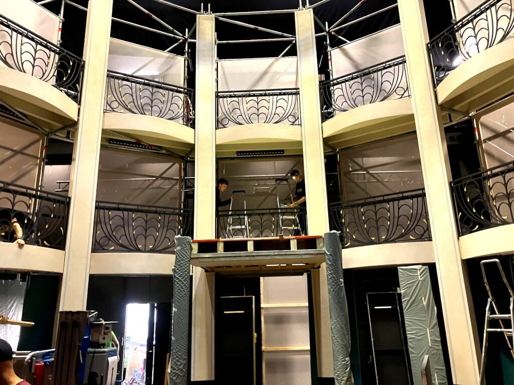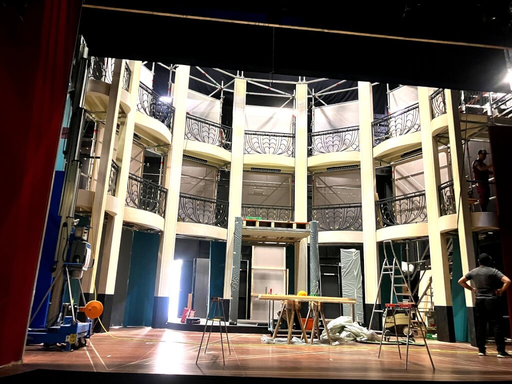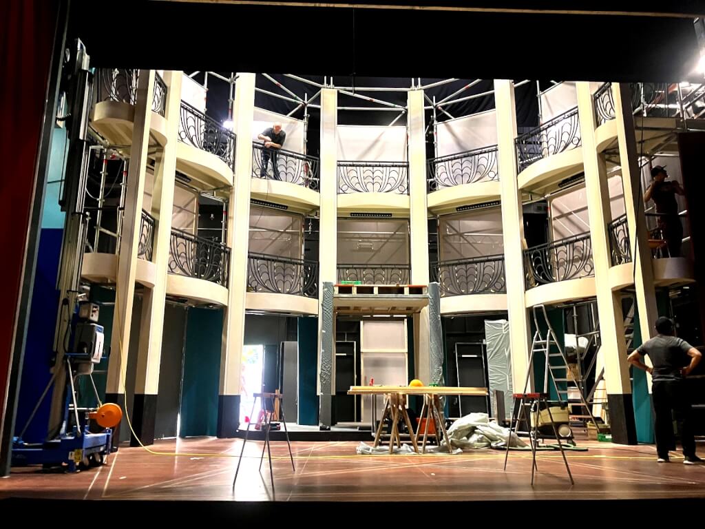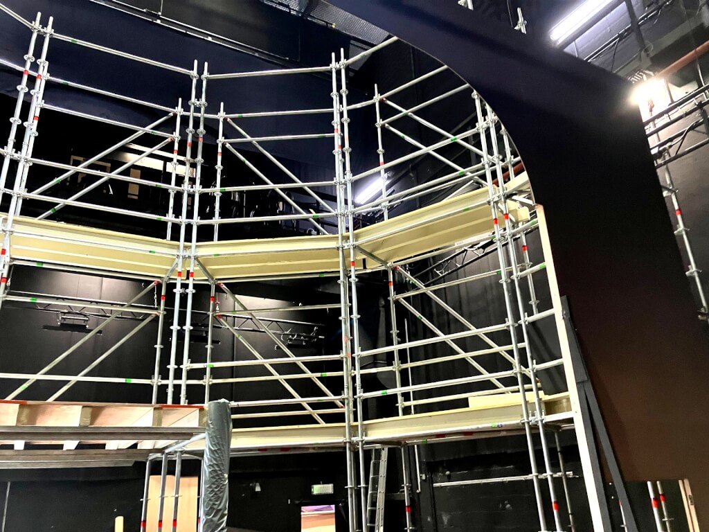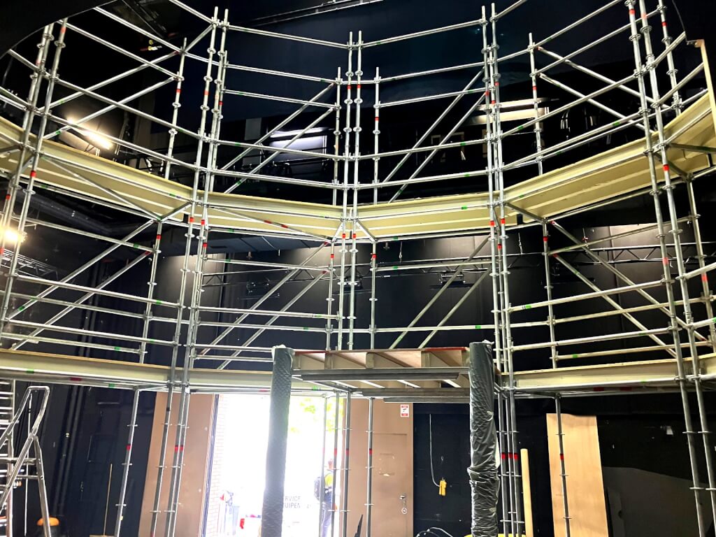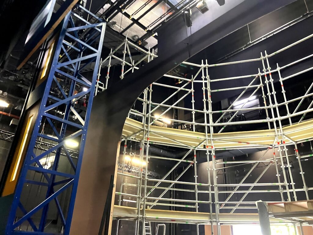 Construction du structure porteuse en layher< br> Mise en place de la structure pour support de décor
